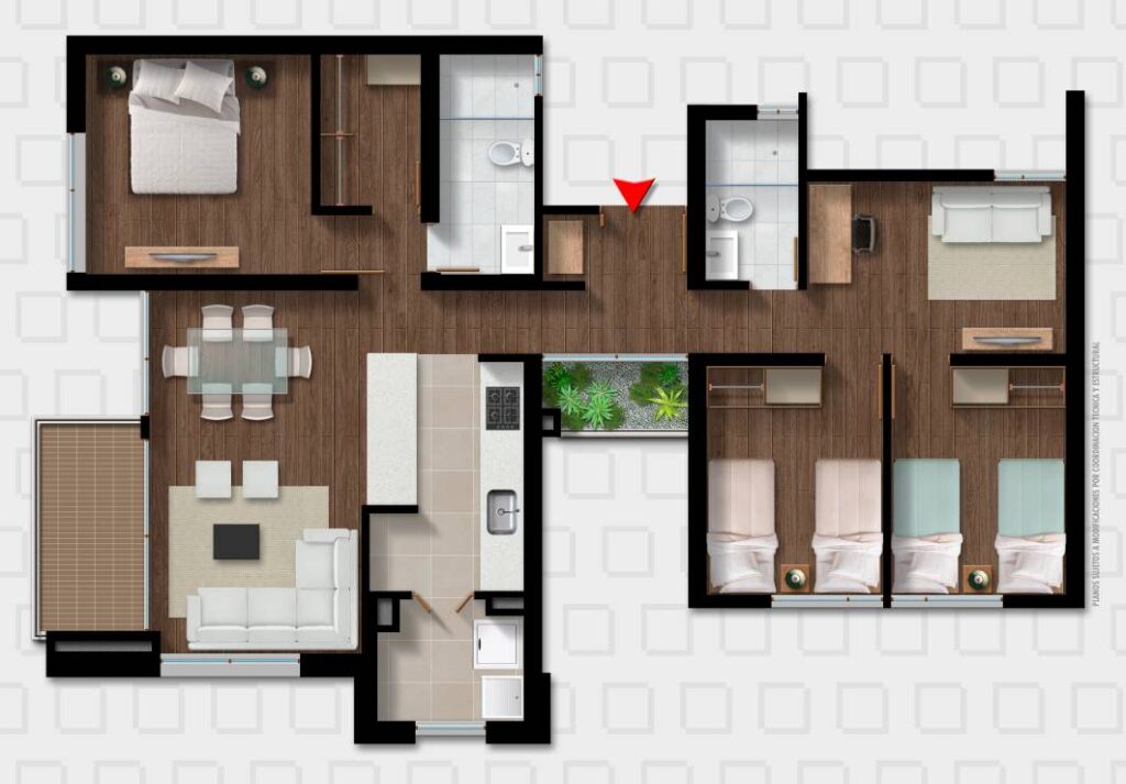 Los apartamentos cuentan con áreas construidas desde 59 hasta 99 m2 y se entregan con modernos acabados que garantizan espacio, iluminación y comodidad.