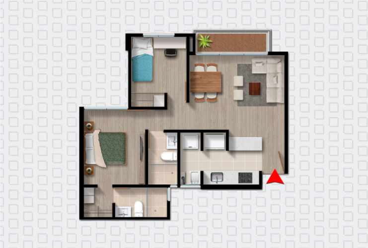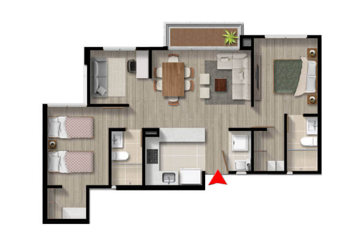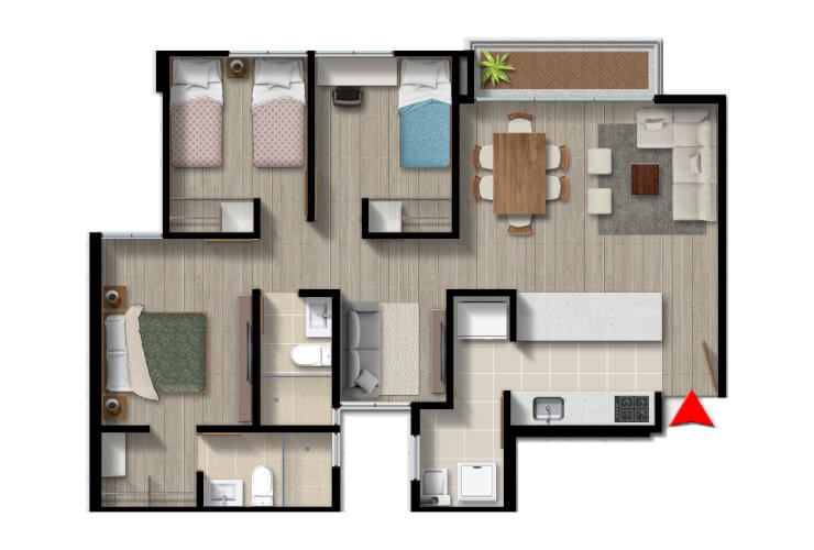 Los apartamentos están diseñados pensando en las necesidades de las familias modernas, con 3 habitaciones, 2 baños y un estudio que puede adaptarse a diferentes usos.